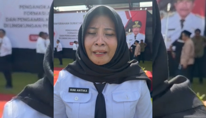 Ribuan tenaga honorer tampak tak kuasa menahan air mata saat menerima SK yang telah lama mereka nantikan. Di antara mereka, seorang penerima SK, Rini Antika, mengungkapkan rasa bahagianya.